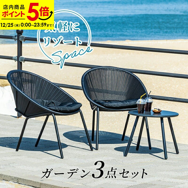 【ポイント5倍★12/25 0:00〜23:59】ガーデン テーブル チェア セット ラタン調 ガーデンファニチャー 3点セット ベランダ 椅子 チェアー おしゃれ カフェ風 ホテル 庭 エクステリア リゾート 屋外 スタッキング コンパクト グレー ブラック
