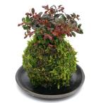 苔玉 紅長寿梅 ベニチョウジュバイ 黒備前器 敷石セット花咲くこけだま コケ玉 ギフト初めての盆栽 誕生日 新入学 新築祝い 送料無料こけだま コケダマ 苔 こけ コケ