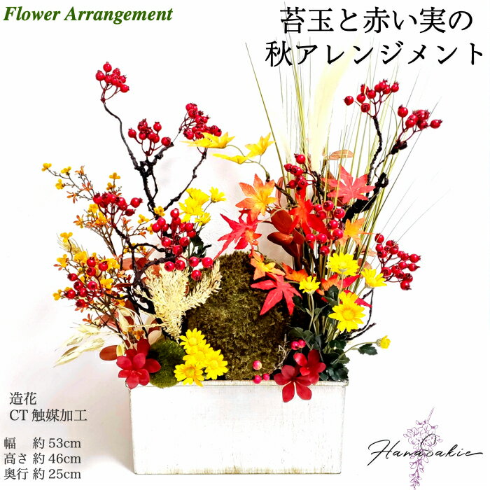 【 1点もの 】 苔玉と赤い実の秋アレンジメント 送料無料 紅葉 もみじ 菊 マム 秋のインテリア フラワーアレンジメント アレンジ 造花 ギフト 秋 フェイク オシャレ カッコイイ お洒落 インテリア アレンジメント 飾り 雑貨 フラワーアレンジ 置物