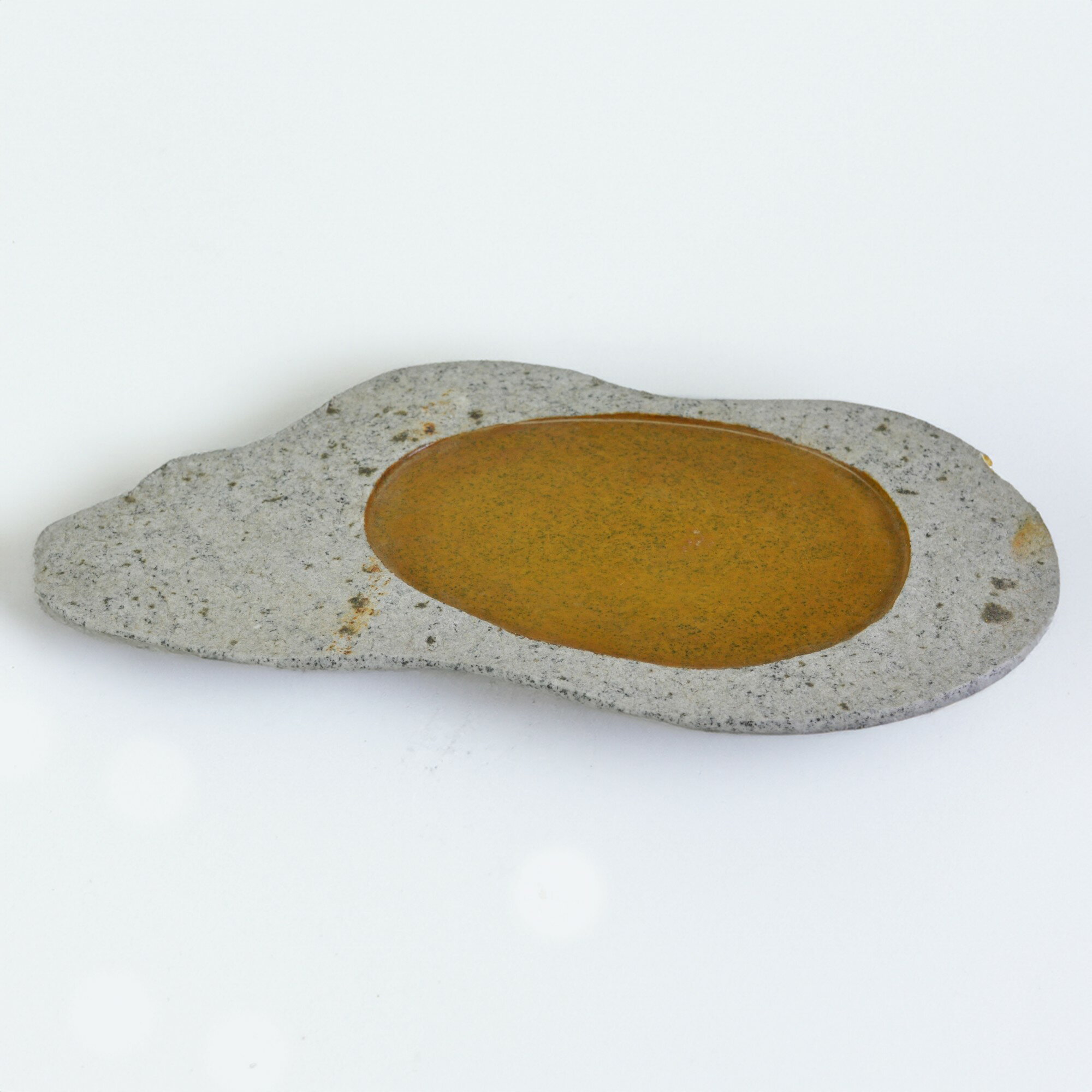 庵治石 花台 お皿 漆塗黄色 盆栽 苔玉