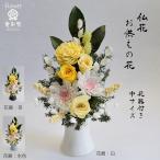 プリザーブドフラワー 仏花 白い菊 黄色のバラ 花器付 イエロー お供え お悔やみ 法要 法事 命日 仏壇 お彼岸 お盆 初盆 新盆 対制作可 中サイズ