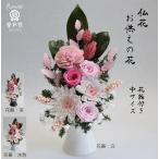 仏花プリザーブドフラワー 白菊 花器付 ピンクのお花 お供え お悔やみ 法要 法事 命日 仏壇 お彼岸 お盆 初盆 新盆 対制作可 中サイズ