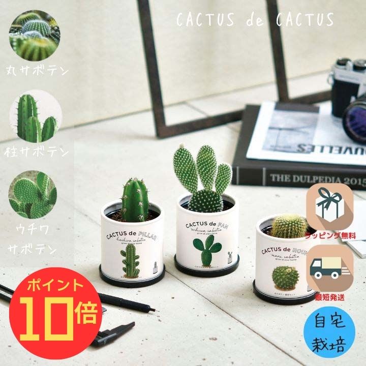 【エントリーで全品P10倍】シール付 栽培キット 家庭菜園 おうち菜園 インテリアグリーン ギフト おしゃれ かわいい 丸サボテン 柱サボテン ウチワサボテン 体験型ギフト プレゼント ポイント消化
