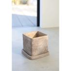 植木鉢 おしゃれ アートスクエアポット CC033-110 4号(11cm) 鉢底穴有り 受け皿付き スタイリッシュ セメント インダストリアル