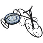 フラワーラック おしゃれ アイアン タイル かわいい アイアンとタイルのトライシクルスタンド ブルーフラワー