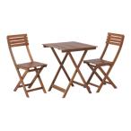 ガーデンテーブル & ガーデンチェア 3点セット 約幅600mm ブラウン 木製 持ち運び便利 折りたたみテーブル ベランダ バルコニー 業務用 まと