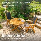 ガーデン チェア テーブル ガーデンテーブルセット 屋外 庭 ウッド調アルミフォールディングテーブル 丸形 3点セット(ln-g-uft90-)