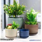 植木鉢 テラコッタ製 シンプル 北欧 縦縞 底に水抜き穴あり トレイ一体型 多肉植物鉢 鉢植え 円形 ガーデンポット フラワーポット お洒落 植木ポット 多肉植物