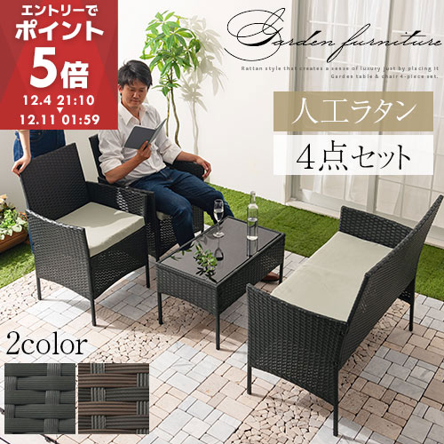 【クーポンで10%OFF★12/4 20:00〜12/5 23:59】 ガーデンソファ ガーデン テーブル セット 3点セット 4点セット ラタン調 軽い 屋外用 肘掛け ソファ ガーデンファニチャー ホテル カフェ ベランダ テラス テーブル 家具 樹脂 ねじなし おしゃれ