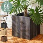 プランター 大型 55cm×55cm スクエア ウッド調 ファイバークレイ 軽量 おしゃれ モダン ナチュラル ヴィンテージ 木目 古材風 ガーデニング 植木鉢 代引不可