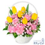 【チューリップ特集】花キューピット お誕生日 記念日 歓送迎 お祝い ホワイトデー イエローチューリップのナチュラルバスケット