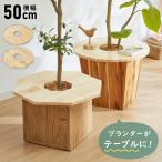 天然木 プランターテーブル 幅50cm 円形 八角形 ラバーウッド 木製 天板 プレート ナチュラル 北欧 サイドテーブル 小物置き 目隠し 鉢土隠し 代引不可