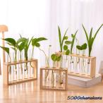 花瓶 透明 ガラス 木製 試験管 クリア 水耕栽培 花器 卓上花瓶 木製枠 透明 試験管 インテリア 飾り 工芸品 輪っか 丸型 試験管 フラワーベース Flower