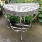 花台 屋外 室内用 観葉植物 盆栽棚 耐久 屋外用 ハーフムーン パティオ2段 アイアン ハーフラウンド ガーデンポーチテーブル アンティーク 全天候型