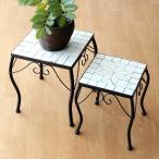 プランタースタンド おしゃれ フラワーテーブル 花台 2点セット 屋内 屋外 アイアン タイル アイアンとタイルのロースタンド2個セット