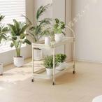 フラワースタンド アイアン おしゃれ 移動 収納ワゴン キャスター付き サイドテーブル 棚 室内 プランタースタンド 2段 移動可能 プランターラック