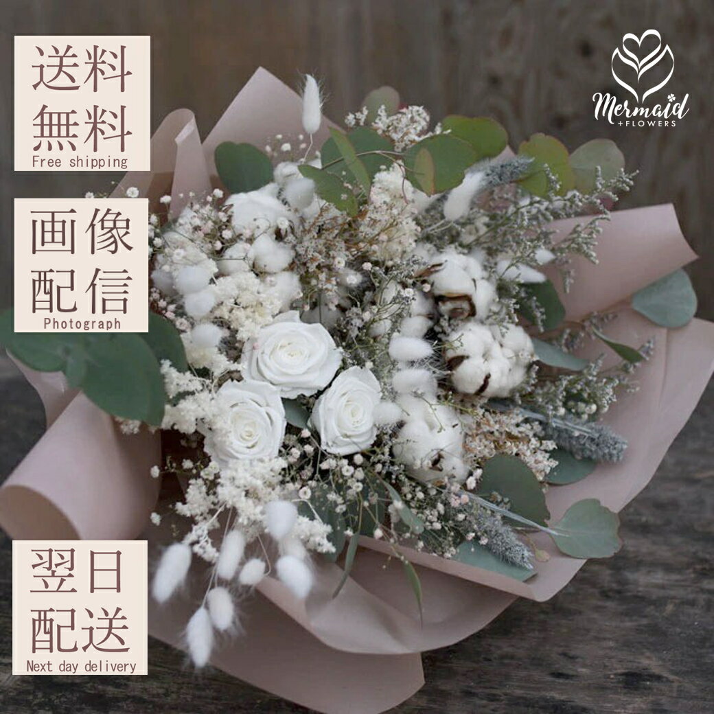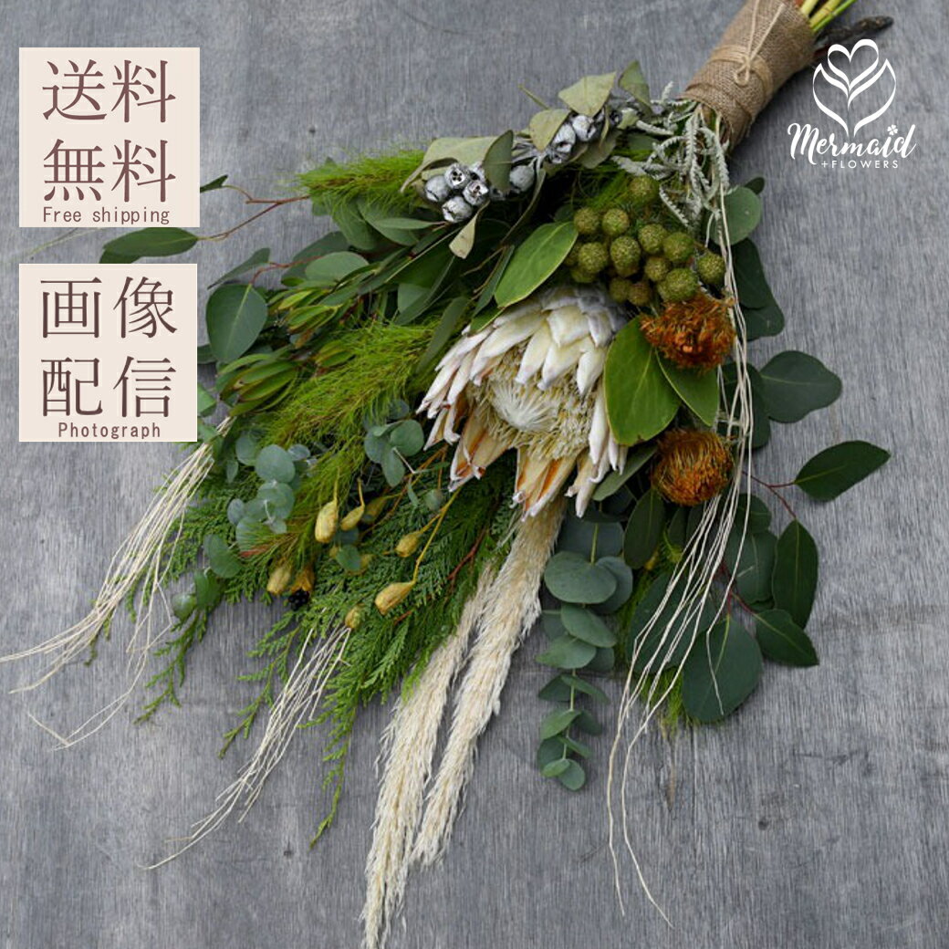 ドライフラワー ブーケ 花束 スワッグ プレゼント 送料無料 ウエディングブーケ「ホワイトクイーン」ウエディング ブライダル スワッグ