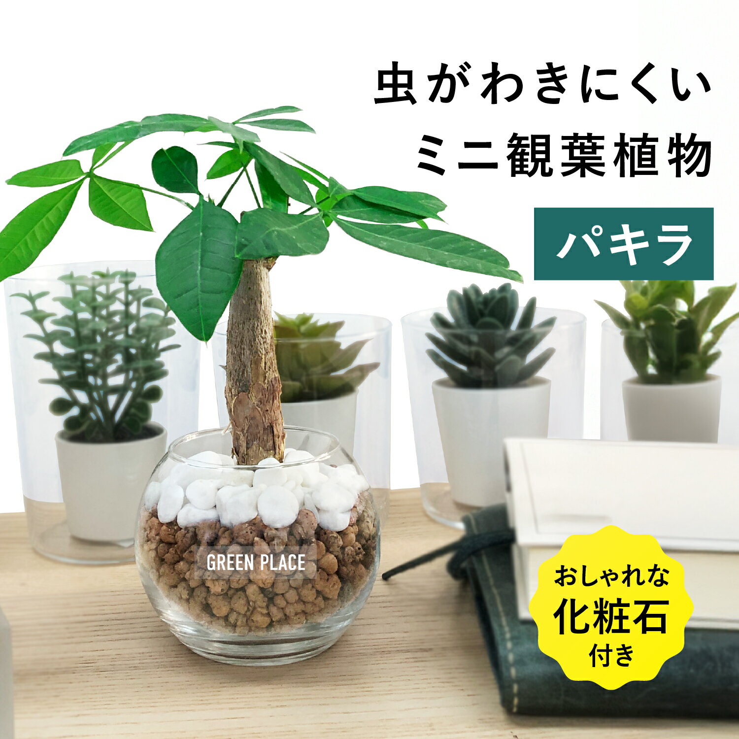【化粧石付き】 パキラ ハイドロカルチャー 観葉植物 土なし 水耕栽培 お祝い ギフト 3号 小型 卓上 小さい ミニサイズ 初心者 飾り石 GREEN PLACE TN