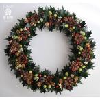 クリスマスリース ヒイラギの葉と松ぼっくりに赤い実 葉はプリザーブド加工 ギフト プレゼント 誕生日 開店祝 引越し祝 超特大
