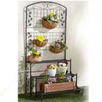 フラワースタンド アイアン 大型 2段 フェンス ガーデニング 花台 棚 ガーデン ハンギング ベランダ 目隠し プランターラック スチール アンティーク レトロ