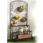 フラワースタンド ガーデニング フェンス ラティス 3段 フェンス付きフラワースタンド ガーデニング 花台 棚 ハンギング プランターラック アンティーク
