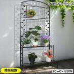 フェンス付き フラワースタンド スリム 3段 幅60cm ガーデンフェンス ラティス アイアン フェンス ガーデニング 花台 棚 ガーデン ハンギング 代引不可