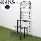 フェンス付き フラワースタンド スリム 3段 幅60cm ガーデンフェンス ラティス アイアン フェンス ガーデニング 花台 棚 ガーデン ハンギング 代引不可