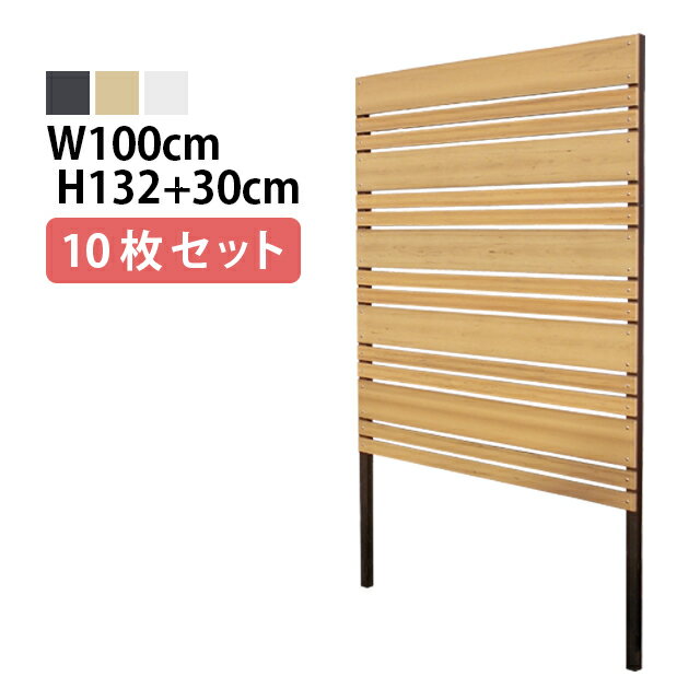 目隠しフェンス 【10枚セット 連結ボルト付】マルチボーダー2型 埋込タイプ 標準色 [幅100cm×高さ132cm+埋込30cm 隙間1cm] 樹脂製 ガーデン DIY おしゃれ 長持ち