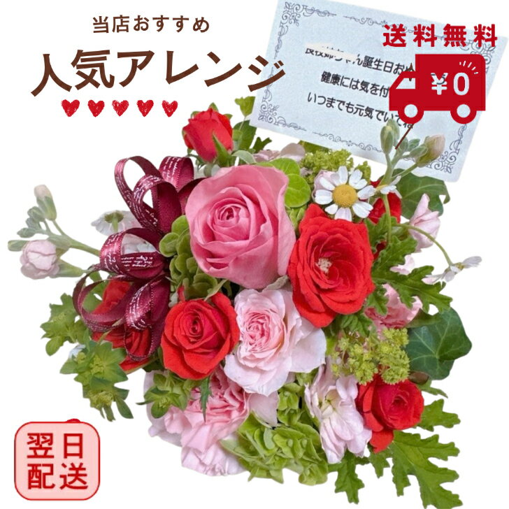 【送料無料 即日発送】誕生日などのお祝いに おまかせアレンジ そのまま飾れる季節の 花 のフラワーアレンジメント【画像配信】お花 ギフト 退職祝い 結婚祝い 記念日 開店祝い 新築祝い 女性 春 卒業祝い 卒園祝い 送別 バレンタイン ホワイトデー【メッセージカード 立札】