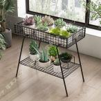ガーデンラック フラワースタンド 2層 園芸 鉄製 フラワーラック 花台 収納ラック ワゴン 観葉植物 サボテン 多肉 多肉植物の植木鉢スタンド