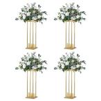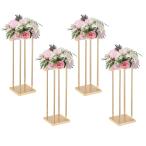 【並行輸入品】ウェディングフラワースタンド センターピース用 ゴールドフラワー花瓶 4個パック 23.5インチ 幾何学メタルフラワーラック イベ