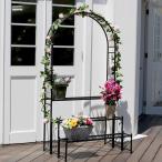 アーチ付フラワーラック アイアンアーチ アンティーク ガーデンアーチ 薔薇アーチ ゲート フェンス エクステリア 園芸 おしゃれ 屋外 庭