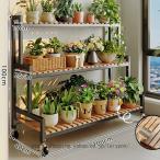プランターラック ガーデン 2段 キャスター付き 幅80/100/120×奥行き40×高さ65cm フラワースタンド ガーデンラック 花置き棚 園芸ラック 植木鉢ラック