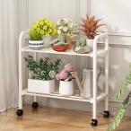 フラワースタンド アイアン 2段 おしゃれ 移動 収納ワゴン キャスター付き サイドテーブル プランターラック ソファサイド ガーデニングラック 花台 鉄製 室内