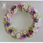 プリザーブドフラワーリース 白・紫・淡い緑のバラ 白・ピンク・淡い緑のアジサイ ギフト プレゼント 誕生日