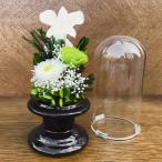 仏花 ガラスドーム入り仏花 デンファレと緑の小菊 お仏壇 お供え 咲き続ける生花 プリザーブドフラワー ギフト[PW]