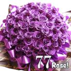 プリザーブドフラワー 喜寿 お祝い 77歳 お祝い 記念日 花束風 紫バラ77本使用 クリアーケース付き あすつく