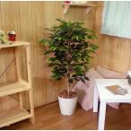 おしゃれ 観葉植物:バロック フィカスベンジャミン ベンジャミナ*白セラアート鉢 バーク 受皿付 大型ヤマト便
