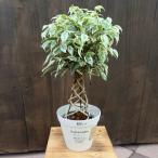 おしゃれ 観葉植物 選べる鉢カバー:フィカス ベンジャミン 斑入り 編み込みタワー *4寸ベンジャミン