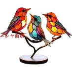 ステンドグラス風 鳥 オーナメント 卓上 置物C&J(株)枝デザイン 両面 マルチカラー 合金 インテリア デスク飾り 北欧風 プレゼント 光を楽しむ おしゃれ