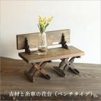 古材と糸車の花置台 ベンチタイプ 花台 木製 ケヤキ 無垢材 アンティーク家具 玄関 和風 飾り棚 古家具 古道具 リメイク 昭和レトロ 和モダン 家具