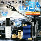 高圧洗浄機 ノズル セット 電源不要 ノズル 約5m→15m 伸縮ホース 3倍伸びる 洗車フォームガン 収納楽々 散水ノズル 散水ホース 花園 掃除用 1ヶ月保証