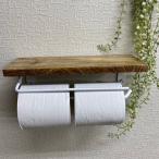 アイアン×木製 トイレットペーパーホルダー ダブル ホワイト 413719 押さえ金具付きシェルフ型/カントリー雑貨