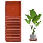 10個入り 植木鉢用ソーサー 7\" プラスチック製 四角い花 水切りトレイ 穴 ない耐久性 ある植木鉢用トレイ 屋内/屋外 植物 ため ベース[レンガ色]