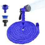 伸びるホース 3倍に伸びる 5m-15m 洗車 ホース 7パターン散水ノズル 三重構造 軽量 改良型で耐久性・丈夫さ ガーデニング 庭 洗車 掃除 ブルー