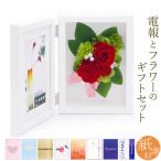 プリザーブドフラワー 「フォトフレーム コンチェルト レッド」 紙素材カード電報セット 祝電 お祝い ギフト 花 結婚式 誕生日 長寿祝い 敬老の日 2025