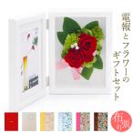 プリザーブドフラワー 「フォトフレーム コンチェルト レッド」 プレミアムカード電報セット 祝電 お祝い ギフト 花 結婚式 誕生日 長寿祝い 敬老の日 2025