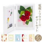 プリザーブドフラワー 「フォトフレーム コンチェルト レッド」 布張りカード電報セット リバティ 祝電 お祝い ギフト 花 結婚式 誕生日 敬老の日 2025