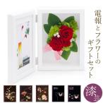 プリザーブドフラワー 「フォトフレーム コンチェルト レッド」 漆芸電報セット 祝電 お祝い ギフト 花 結婚式 誕生日 長寿祝い 敬老の日 2025 叙勲 受章祝い