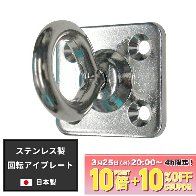 [全品10%OFF×25日限定クーポン+P10倍 25日20時〜4H]日よけ サンシェード すだれ ビニールシート ビニールカーテン 防犯 防鳥ネットなどの取付に 回転 アイプレート 1個 ステンレス製 日本製 ビスは付属していません 即納可 H-C-1